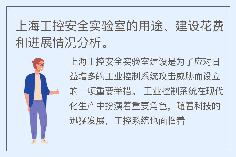 上海工控安全实验室的用途、建设花费和进展情况分析。