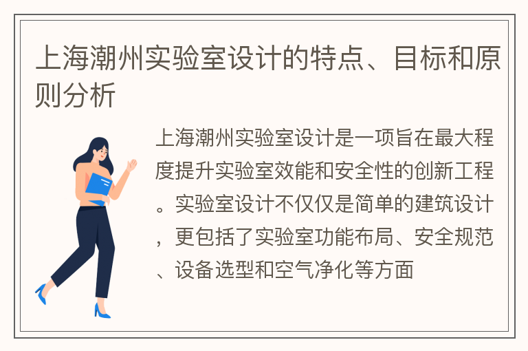 上海潮州实验室设计是一项旨在最大程度提升实验室效能和安全性的创新工程。实验室设计不仅仅是简单的建筑设计,更包括了实验室功能布局、安全规范、设备选型和空气净化等方面......【点击详情】