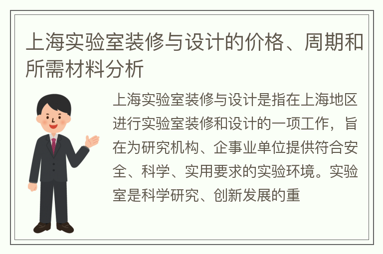 上海实验室装修与设计是指在上海地区进行实验室装修和设计的一项工作,旨在为研究机构、企事业单位提供符合安全、科学、实用要求的实验环境。实验室是科学研究、创新发展的重......【点击详情】