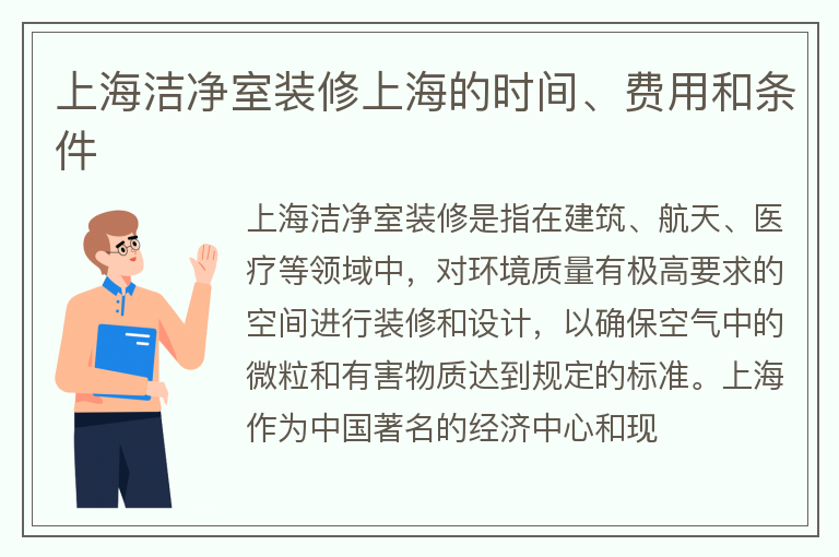 上海洁净室装修是指在建筑、航天、医疗等领域中,对环境质量有极高要求的空间进行装修和设计,以确保空气中的微粒和有害物质达到规定的标准。上海作为中国著名的经济中心和现......【点击详情】