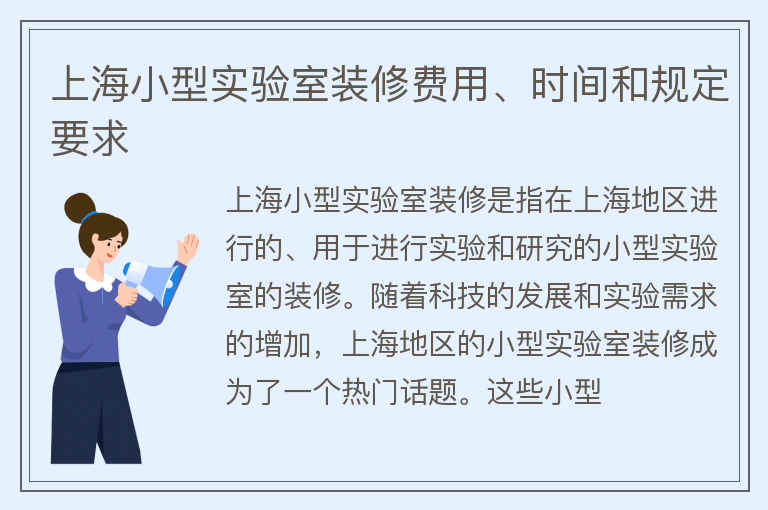 上海小型实验室装修是指在上海地区进行的、用于进行实验和研究的小型实验室的装修。随着科技的发展和实验需求的增加,上海地区的小型实验室装修成为了一个热门话题。这些小型......【点击详情】