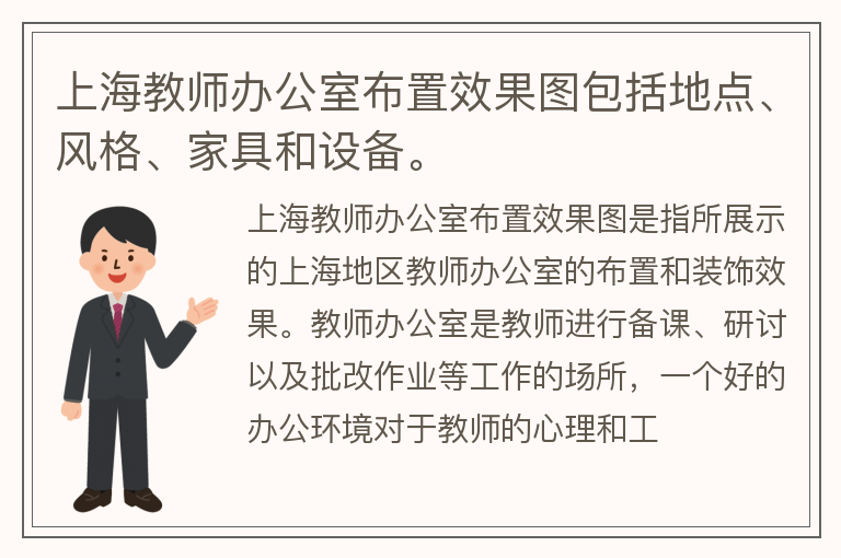 上海教师办公室布置效果图包括地点、风格、家具和设备。