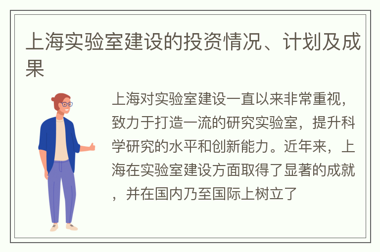 上海对实验室建设一直以来非常重视,致力于打造一流的研究实验室,提升科学研究的水平和创新能力。近年来,上海在实验室建设方面取得了显著的成就,并在国内乃至国际上树立了......【点击详情】
