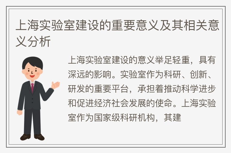 上海实验室建设的意义举足轻重,具有深远的影响。实验室作为科研、创新、研发的重要平台,承担着推动科学进步和促进经济社会发展的使命。上海实验室作为国家级科研机构,其建......【点击详情】