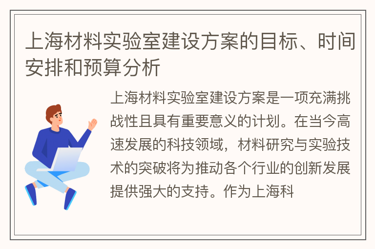上海材料实验室建设方案的目标、时间安排和预算分析