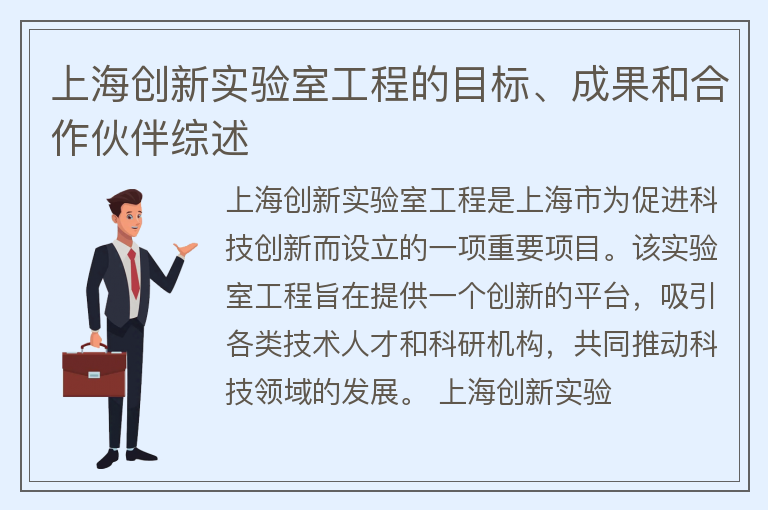 上海创新实验室工程的目标、成果和合作伙伴综述
