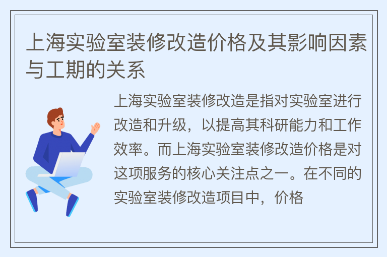 上海实验室装修改造是指对实验室进行改造和升级,以提高其科研能力和工作效率。而上海实验室装修改造价格是对这项服务的核心关注点之一。在不同的实验室装修改造项目中,价格......【点击详情】