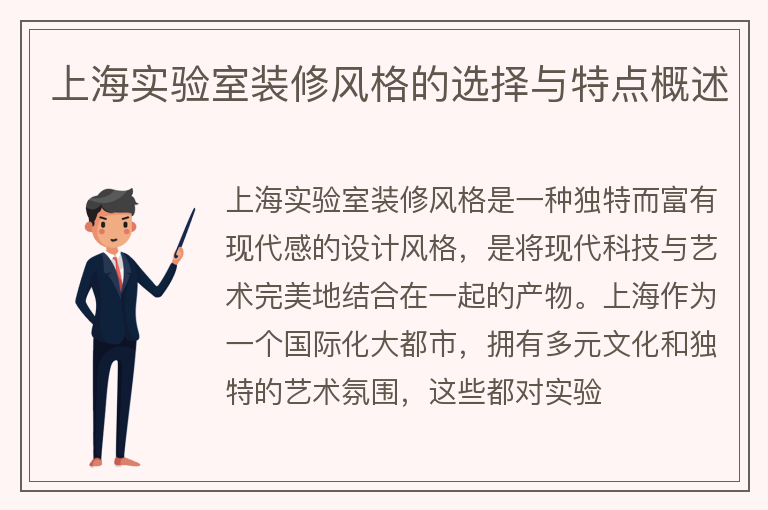 上海实验室装修风格是一种独特而富有现代感的设计风格,是将现代科技与艺术完美地结合在一起的产物。上海作为一个国际化大都市,拥有多元文化和独特的艺术氛围,这些都对实验......【点击详情】