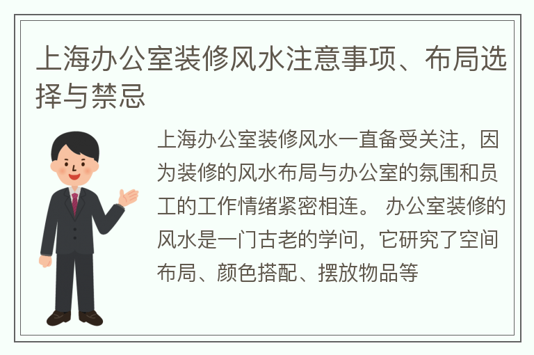 上海办公室装修风水注意事项、布局选择与禁忌