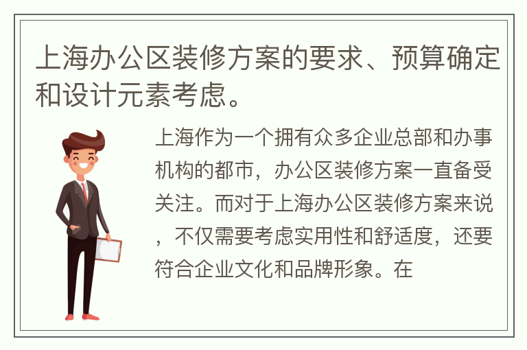 上海办公区装修方案的要求、预算确定和设计元素考虑。
