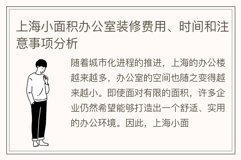 上海小面积办公室装修费用、时间和注意事项分析