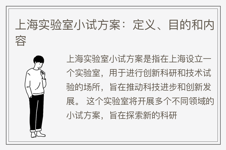 上海实验室小试方案:定义、目的和内容
