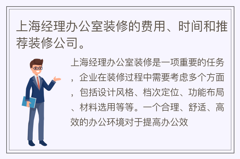 上海经理办公室装修的费用、时间和推荐装修公司。