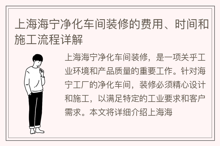 上海海宁净化车间装修的费用、时间和施工流程详解
