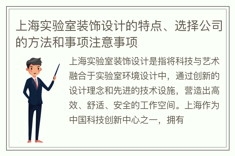 上海实验室装饰设计的特点、选择公司的方法和事项注意事项