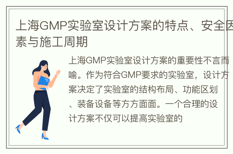 上海GMP实验室设计方案的特点、安全因素与施工周期