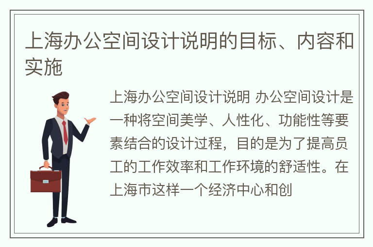 上海办公空间设计说明 办公空间设计是一种将空间美学、人性化、功能性等要素结合的设计过程,目的是为了提高员工的工作效率和工作环境的舒适性。在上海市这样一个经济中心和创......【点击详情】