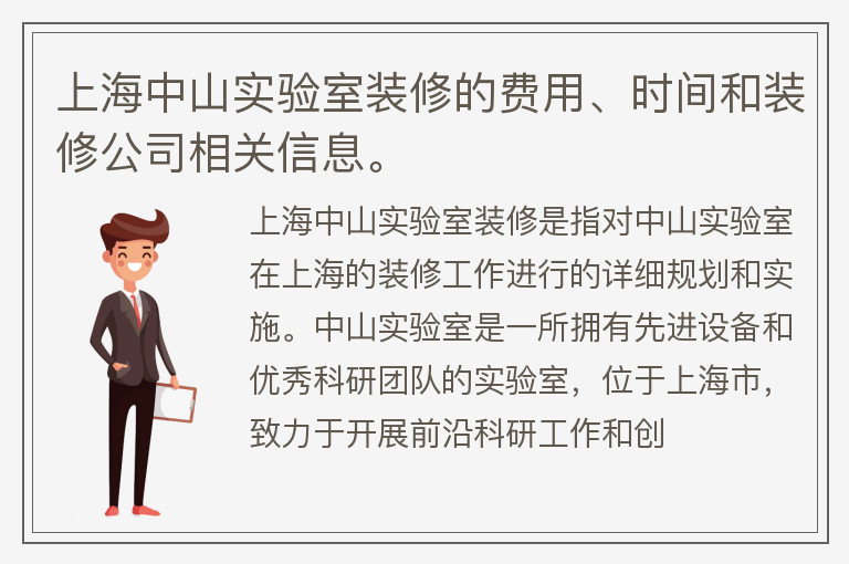 上海中山实验室装修的费用、时间和装修公司相关信息。