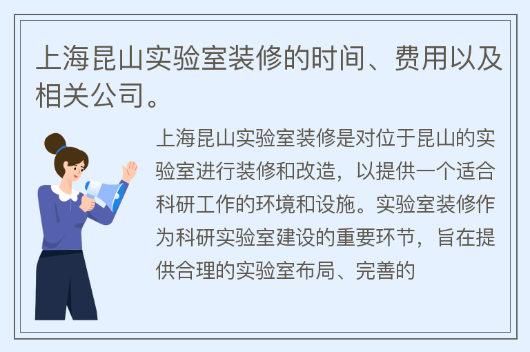 上海昆山实验室装修是对位于昆山的实验室进行装修和改造,以提供一个适合科研工作的环境和设施。实验室装修作为科研实验室建设的重要环节,旨在提供合理的实验室布局、完善的......【点击详情】