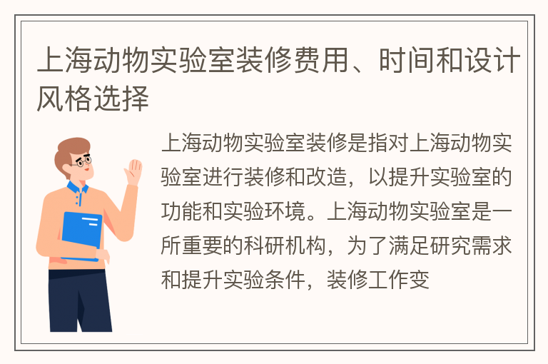 上海动物实验室装修是指对上海动物实验室进行装修和改造,以提升实验室的功能和实验环境。上海动物实验室是一所重要的科研机构,为了满足研究需求和提升实验条件,装修工作变......【点击详情】