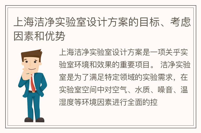 上海洁净实验室设计方案的目标、考虑因素和优势