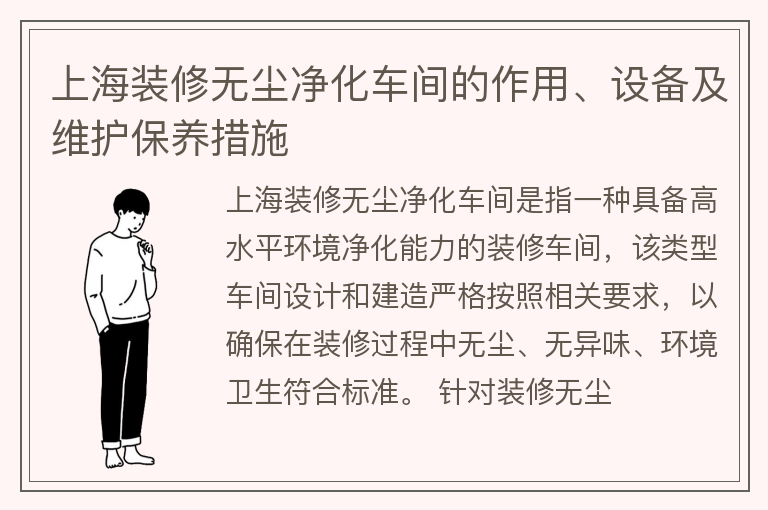 上海装修无尘净化车间的作用、设备及维护保养措施