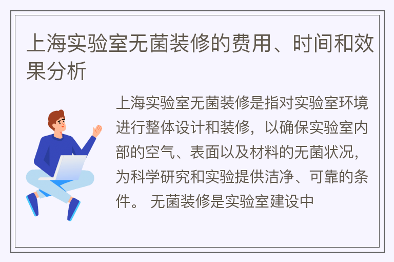上海实验室无菌装修是指对实验室环境进行整体设计和装修,以确保实验室内部的空气、表面以及材料的无菌状况,为科学研究和实验提供洁净、可靠的条件。 无菌装修是实验室建设中......【点击详情】