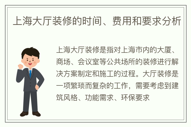 上海大厅装修是指对上海市内的大厦、商场、会议室等公共场所的装修进行解决方案制定和施工的过程。大厅装修是一项繁琐而复杂的工作,需要考虑到建筑风格、功能需求、环保要求......【点击详情】