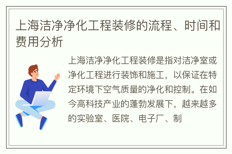 上海洁净净化工程装修是指对洁净室或净化工程进行装饰和施工,以保证在特定环境下空气质量的净化和控制。在如今高科技产业的蓬勃发展下,越来越多的实验室、医院、电子厂、制......【点击详情】