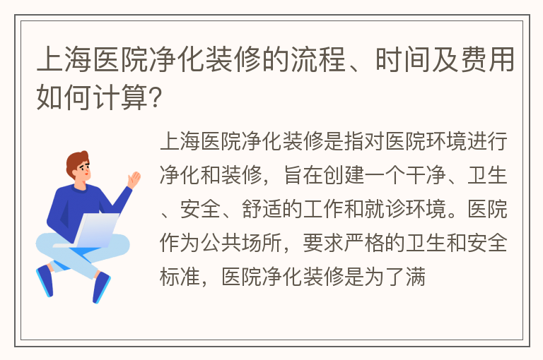 上海医院净化装修是指对医院环境进行净化和装修,旨在创建一个干净、卫生、安全、舒适的工作和就诊环境。医院作为公共场所,要求严格的卫生和安全标准,医院净化装修是为了满......【点击详情】