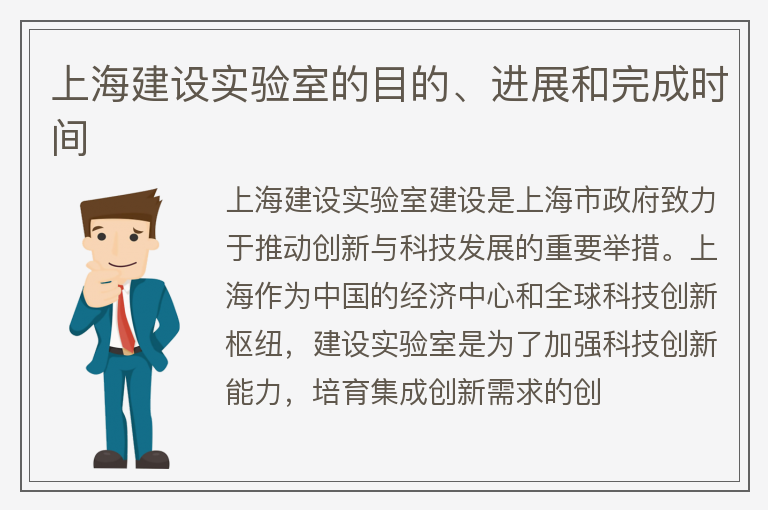 上海建设实验室的目的、进展和完成时间