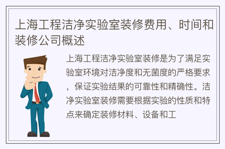 上海工程洁净实验室装修费用、时间和装修公司概述