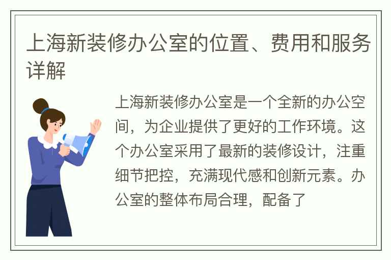 上海新装修办公室的位置、费用和服务详解