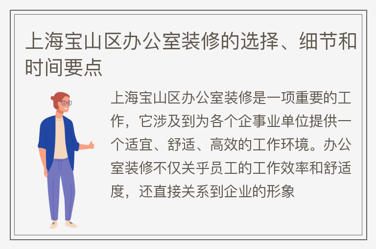上海宝山区办公室装修的选择、细节和时间要点