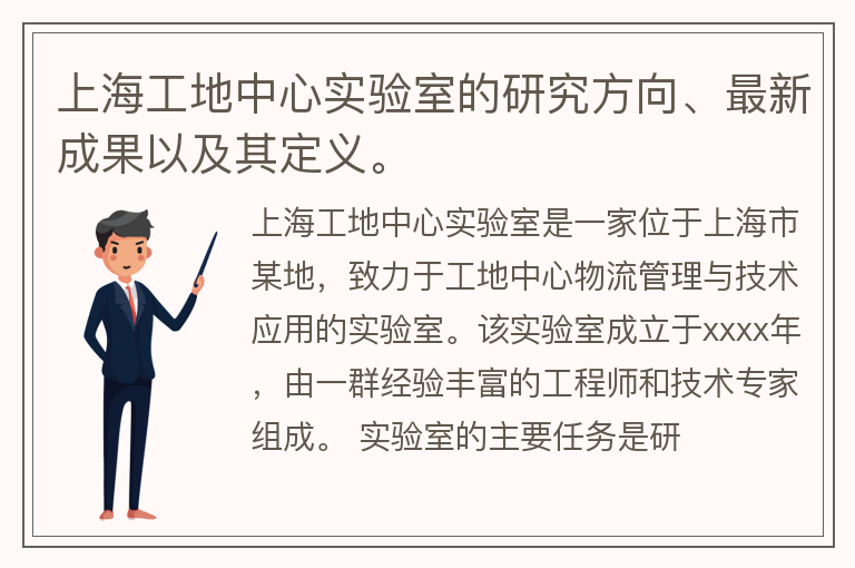 上海工地中心实验室的研究方向、最新成果以及其定义。