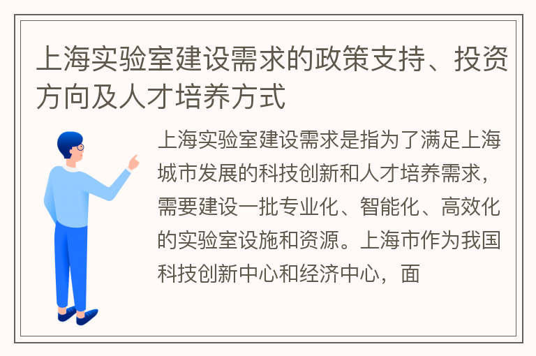 上海实验室建设需求的政策支持、投资方向及人才培养方式