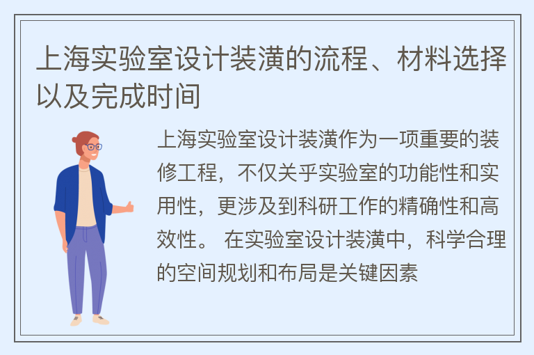 上海实验室设计装潢的流程、材料选择以及完成时间