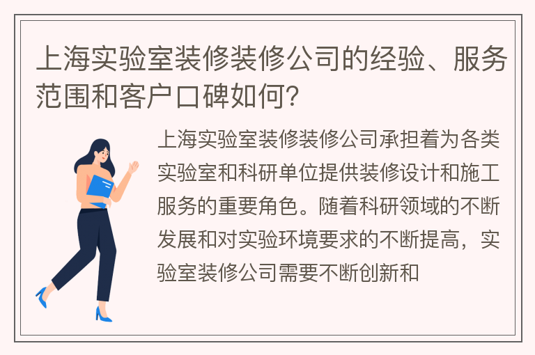 上海实验室装修装修公司的经验、服务范围和客户口碑如何?