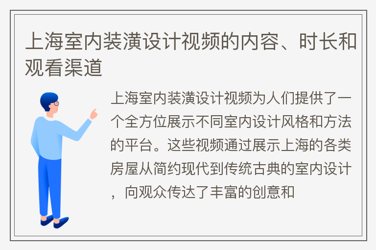 上海室内装潢设计视频为人们提供了一个全方位展示不同室内设计风格和方法的平台。这些视频通过展示上海的各类房屋从简约现代到传统古典的室内设计,向观众传达了丰富的创意和......【点击详情】