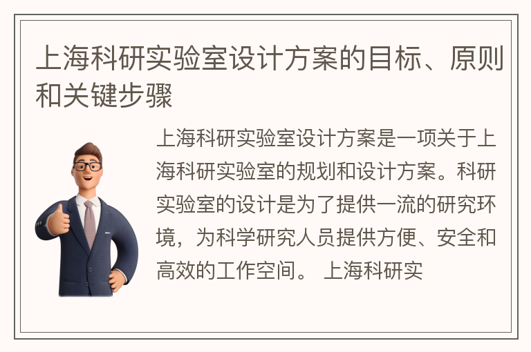 上海科研实验室设计方案是一项关于上海科研实验室的规划和设计方案。科研实验室的设计是为了提供一流的研究环境,为科学研究人员提供方便、安全和高效的工作空间。 上海科研实......【点击详情】