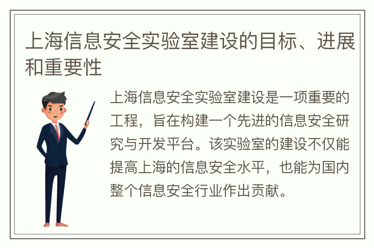 上海信息安全实验室建设是一项重要的工程,旨在构建一个先进的信息安全研究与开发平台。该实验室的建设不仅能提高上海的信息安全水平,也能为国内整个信息安全行业作出贡献。......【点击详情】