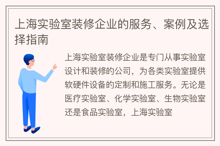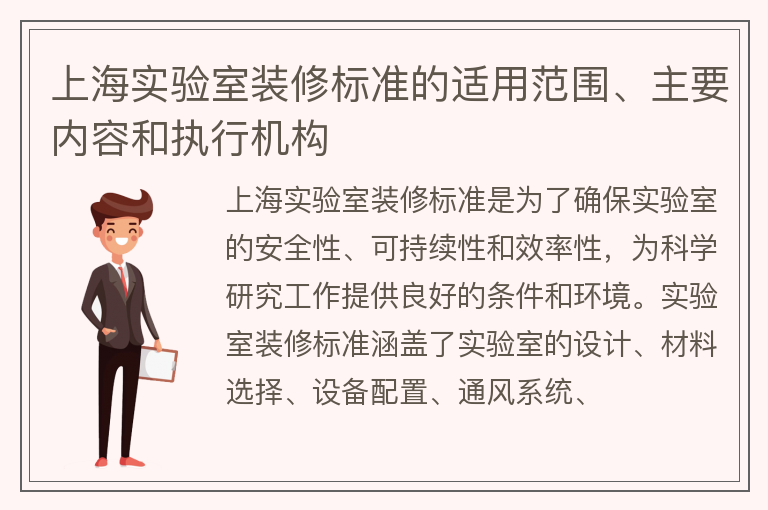上海实验室装修标准的适用范围、主要内容和执行机构