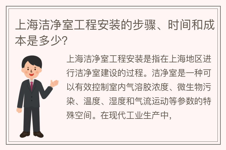 上海洁净室工程安装的步骤、时间和成本是多少?