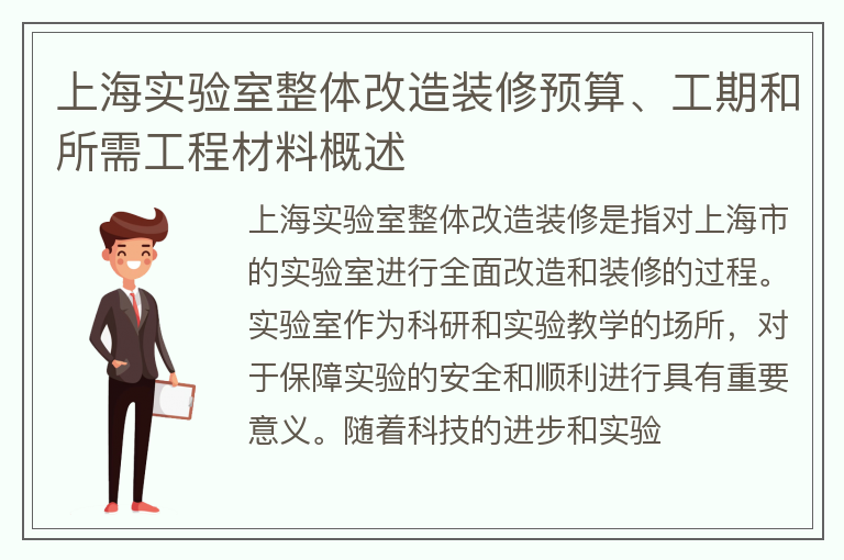 上海实验室整体改造装修预算、工期和所需工程材料概述