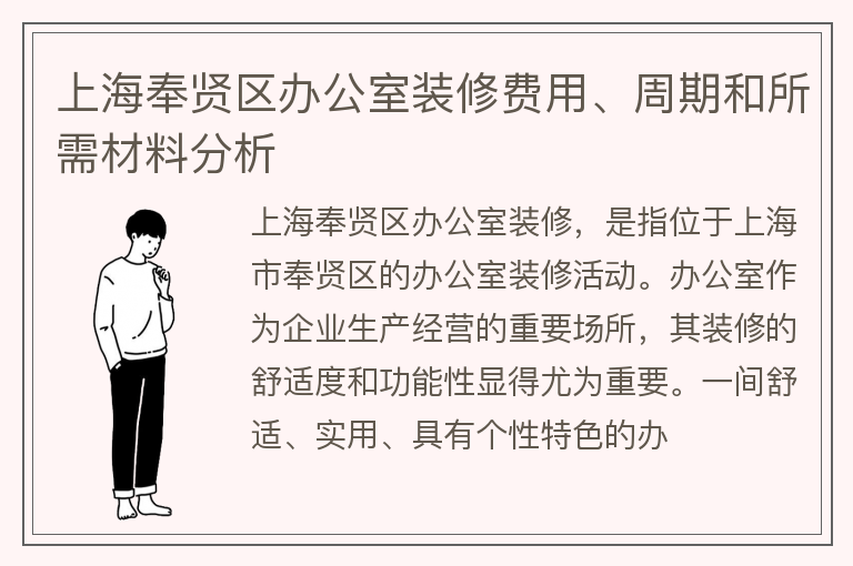 上海奉贤区办公室装修费用、周期和所需材料分析