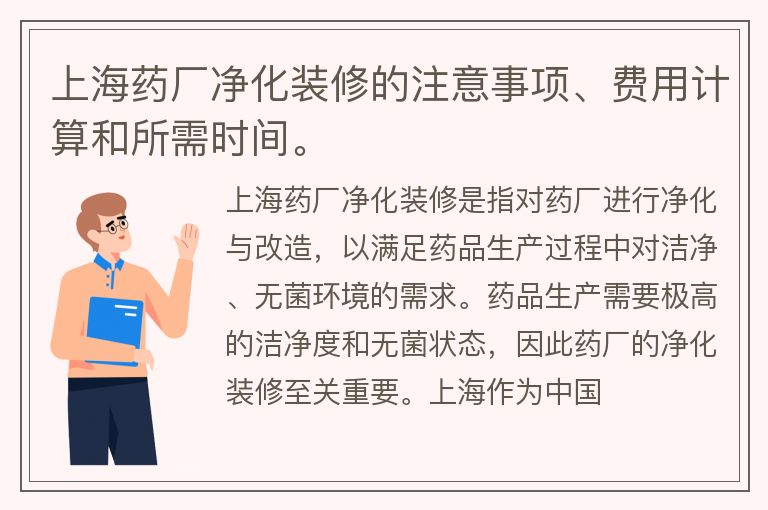 上海药厂净化装修的注意事项、费用计算和所需时间。