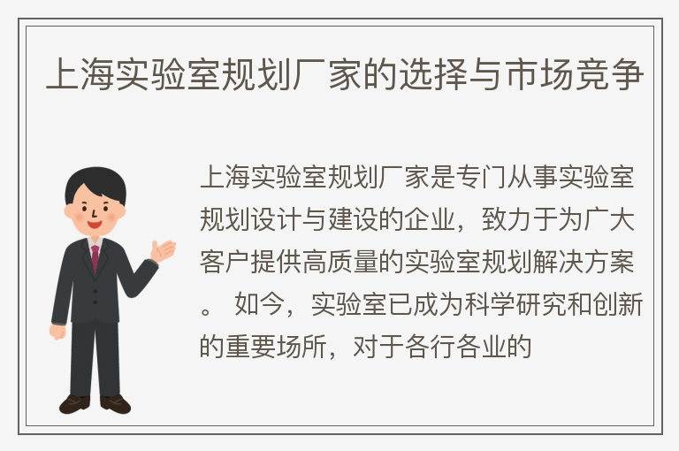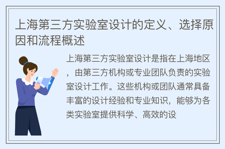 上海第三方实验室设计是指在上海地区,由第三方机构或专业团队负责的实验室设计工作。这些机构或团队通常具备丰富的设计经验和专业知识,能够为各类实验室提供科学、高效的设......【点击详情】