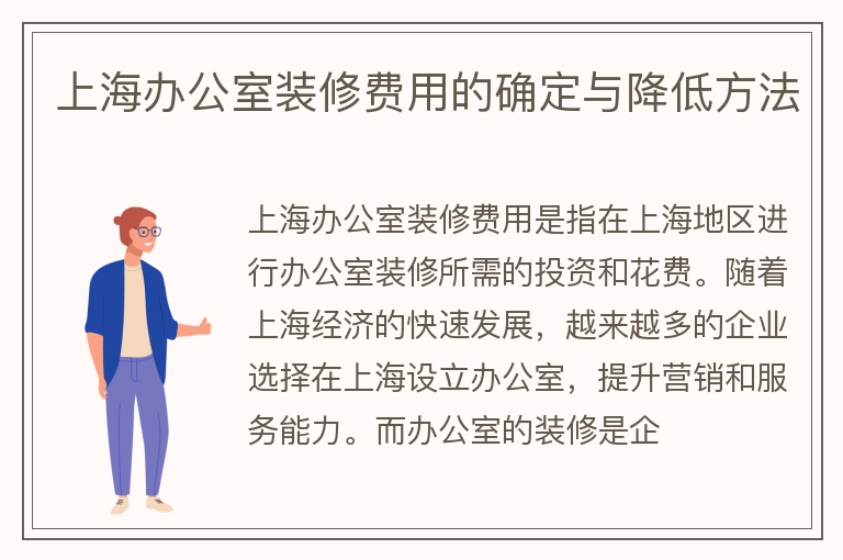 上海办公室装修费用是指在上海地区进行办公室装修所需的投资和花费。随着上海经济的快速发展,越来越多的企业选择在上海设立办公室,提升营销和服务能力。而办公室的装修是企......【点击详情】