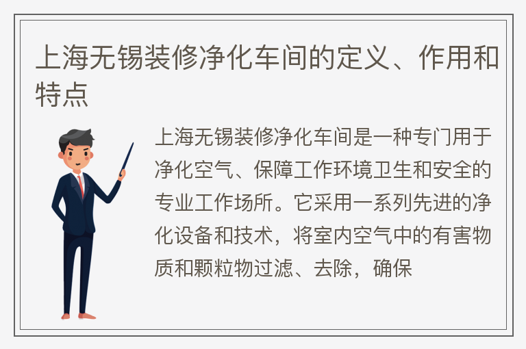 上海无锡装修净化车间的定义、作用和特点