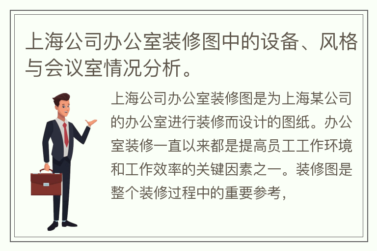 上海公司办公室装修图中的设备、风格与会议室情况分析。